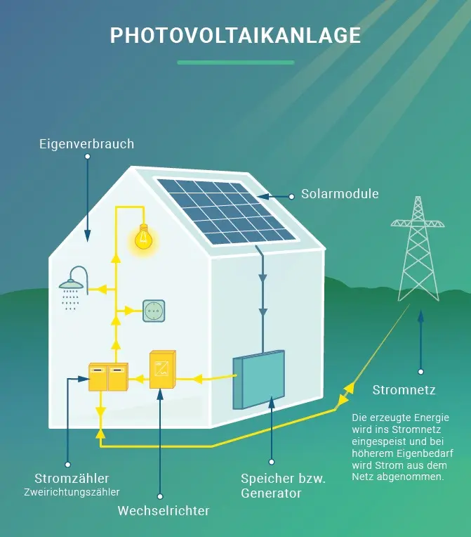 Photovoltaik ist eine Technologie, die die Sonnenenergie in elektrischen Strom umwandelt. Sie nutzt dabei den sogenannten photovoltaischen Effekt, bei dem Solarzellen Licht in elektrische Energie umwandeln. Photovoltaik gilt als eine der vielversprechendsten und umweltfreundlichsten Formen der Energieerzeugung und spielt eine wichtige Rolle bei der Förderung erneuerbarer Energien und der Reduzierung von CO₂-Emissionen.